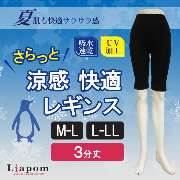 [Liapom]レギンス レディース ポリエステル 3分丈 さらさら クール 涼感 涼しい 冷感 ひんやり 春物 アンダーパンツ M L 黒 薄手 ストレッチ ヨガ ヨガウェア 無地 ぴったりと着用 吸汗速乾
