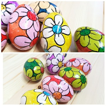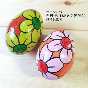たまごの形をしたかわいらしいフォルムのミニマラカス 色鮮やかな花柄ペイントです 少し揺らしただけでもやさしいビーズの音がします 重さ・音と子供さんにも楽しんでいただけるサイズです ※ハンドメイドとなりますので部分的にペイント剥がれが見られる箇所がございます 【材質】木製 【サイズ】(cm)高さ7×直径15 【生産国】インドネシア 【配送方法】定形外(お荷物追跡なし) 【ご注文前に一読ください】 ☆