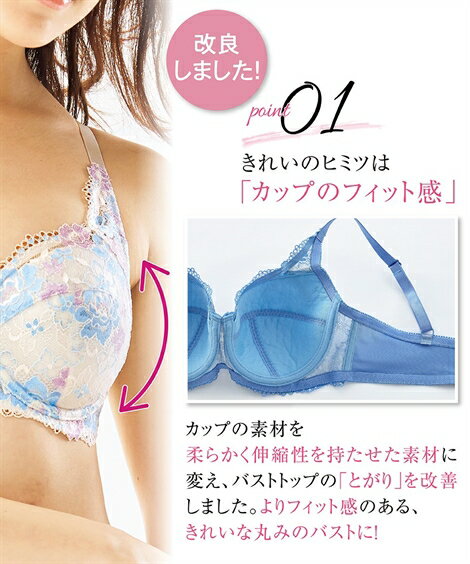 カップの素材を柔らかく伸びがいいものに変え、バストトップの“とがり”を改善。